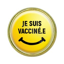 • Pins rond : Je suis vacciné.e, smiley